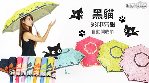 黑貓彩印亮銀自動開放傘"17Life購物電話查詢